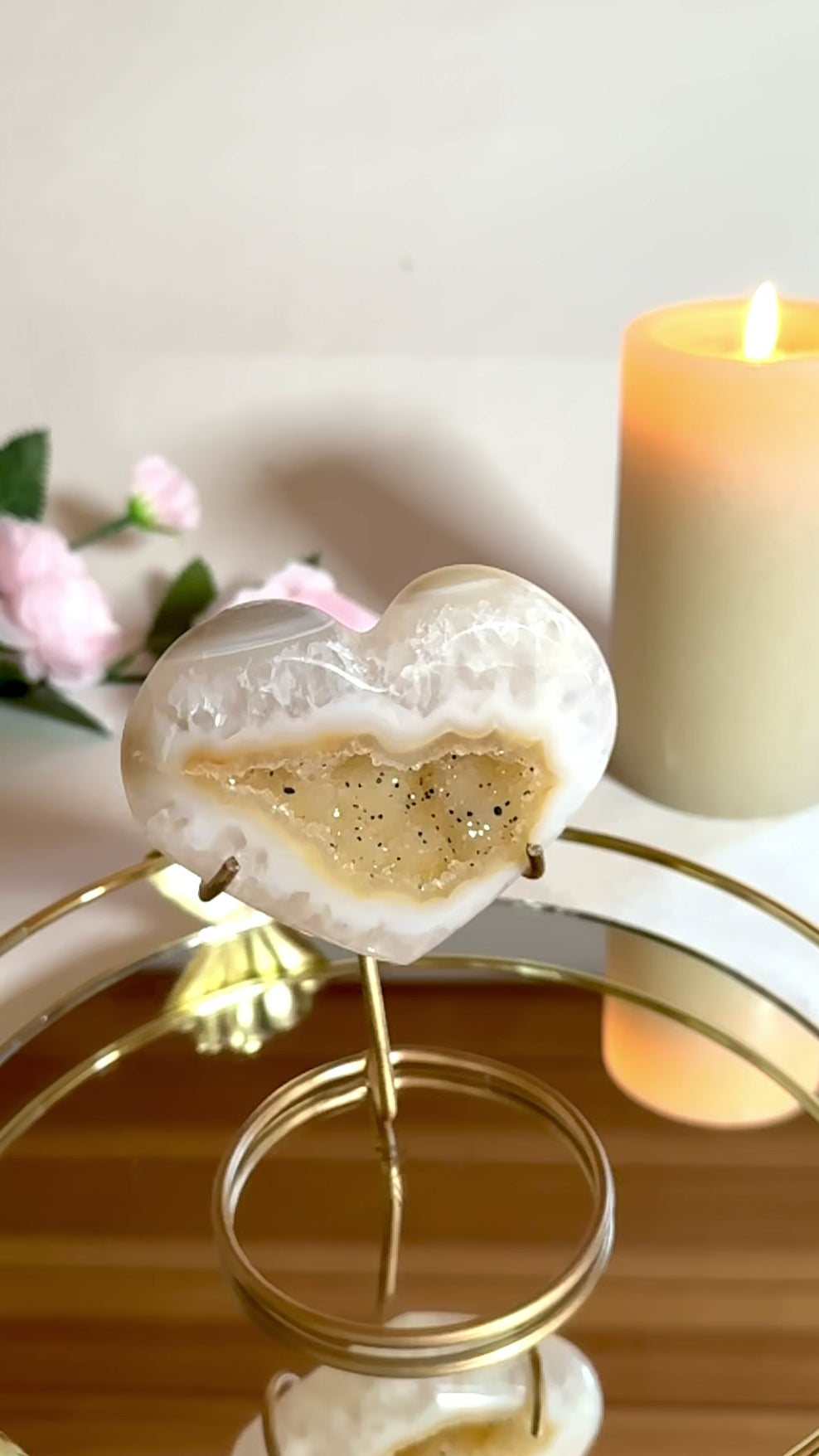 Rayonnant et chaleureux, ce cœur en agate solaire diffuse une énergie lumineuse et enveloppante. Il symbolise l’amour vivant, la joie partagée et la vitalité du lien.
