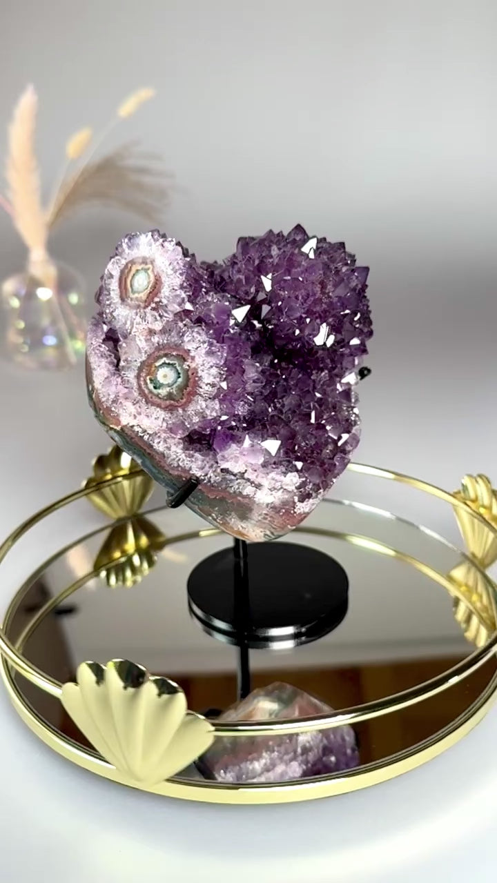 Ses nuances violettes profondes et ses cristaux étincelants captivent le regard et dégagent une énergie à la fois apaisante et inspirante.